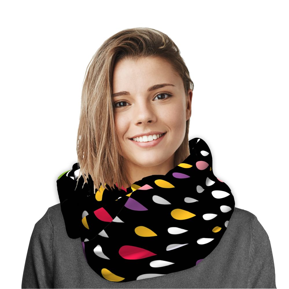 - може да се носи около врата, като качулка или като маска